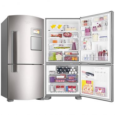 Central Inteligente: Painel Touch Screen com Central Inteligente que gerencia o dia a dia da sua cozinha, deixando sua vida mais fácil até na hora de ir ao supermercado. Com controle de temperatura do refrigerador e as funções especiais: festa, compras e férias ; ainda conta com uma série de aplicativos para facilitar o seu dia a dia.